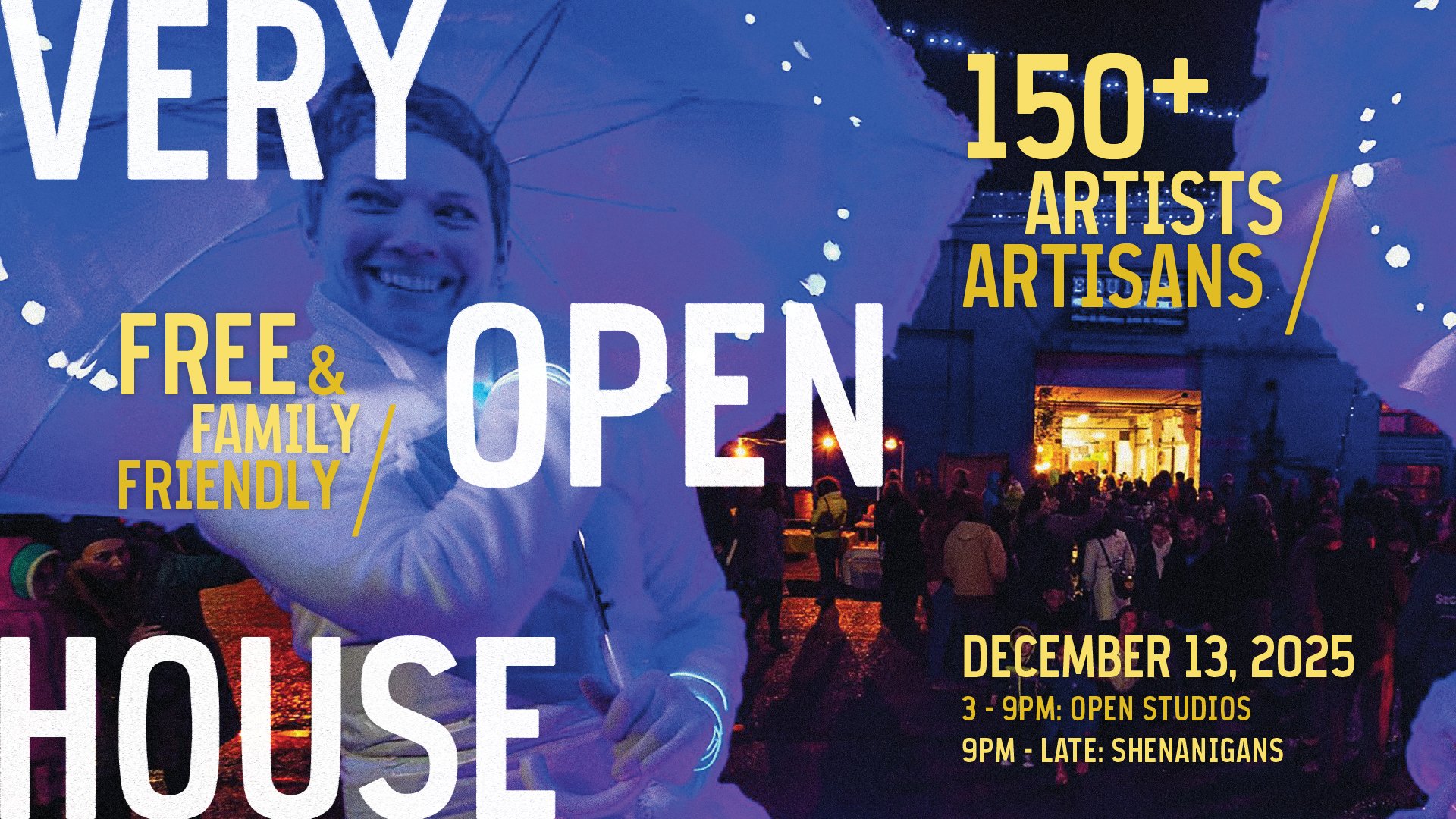 3–9pm - for open studios, shenanigans till midnight...